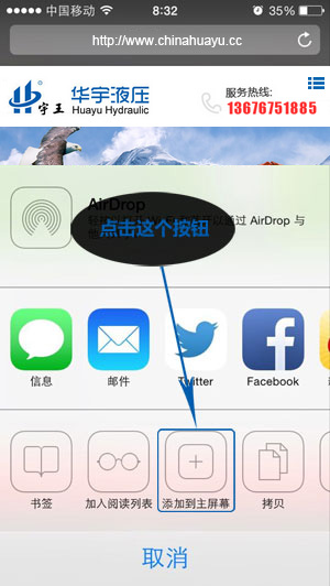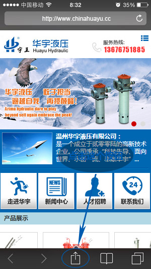 答:(1)用苹果原生浏览器Safari打开您的手机网站 (2)点击下方工具栏第三个按钮